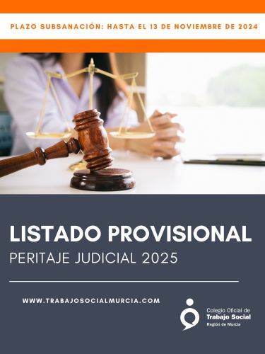 Se informa que se ha publicado el listado provisional de Peritaje Judicial 2025, disponible en el tablón de anuncios de la web del colegio.