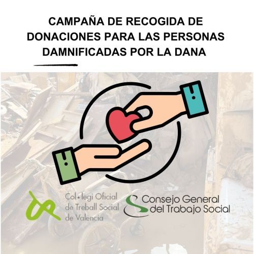 Se informa que el Consejo General del Trabajo Social ha lanzado una campaña de recaudación de donaciones que se destinarán íntegramente para cubrir las necesidades de las personas damnificadas en Valencia por la DANA, sobre todo de aquellas en situación de vulnerabilidad y que ahora han perdido lo que tenían.