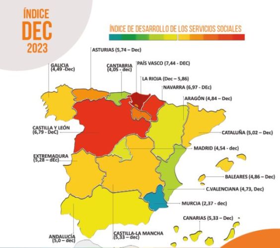La Asociación Estatal de Directoras y Gerentes de Servicios Sociales ha publicado el informe sobre el Índice de Desarrollo de los Servicios Sociales (Índice DEC 2023).