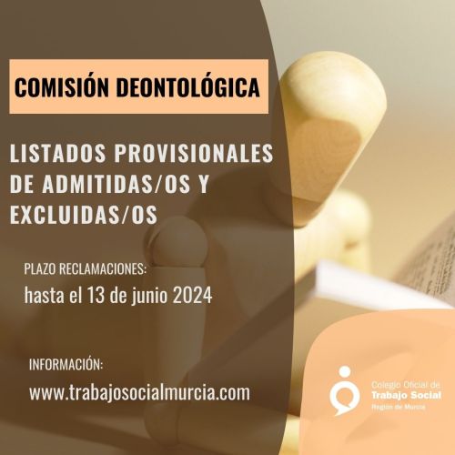 Comisión Deontológica: listados provisionales de personas admitidas y excluidas.