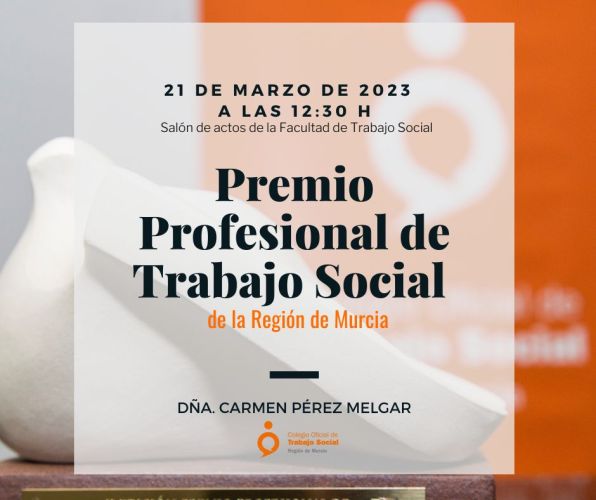 El Colegio de Trabajo Social de la Región de Murcia y la Facultad de Trabajo Social de la Universidad de Murcia comunican que la galardonada, en la III Edición Premio Profesional de Trabajo Social de la Región de Murcia es Dña. Carmen Pérez Melgar.