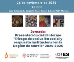 18:30 h. Presentación del II Informe 2024-2025: Riesgo de Exclusión Social y Respuesta Institucional en la Región de Murcia.