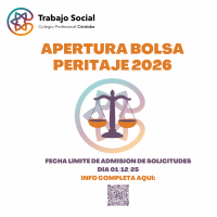 El Colegio Profesional de Trabajo Social de Córdoba comunica la apertura la Bolsa de Peritaje Judicial para el año 2026.
