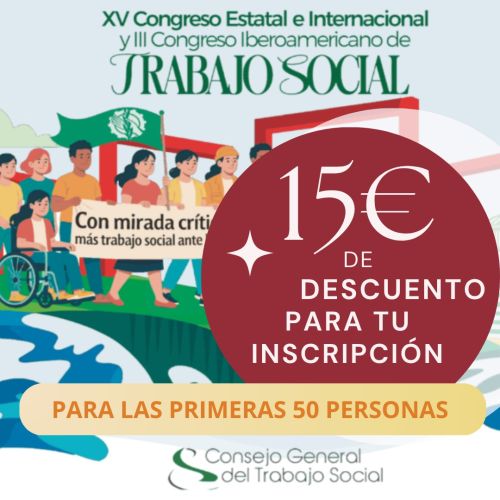 ¡OFRECEMOS 50 CÓDIGOS DE DESCUENTO PARA EL XV CONGRESO ESTATAL E INTERNACIONAL Y III IBEROAMERICANO DE TRABAJO SOCIAL!