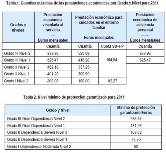El Gobierno establece las cuantías máximas y mínimas de las prestaciones por dependencia