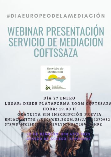 El 27 de enero el COTSSAZA organiza una webinar sobre el Servicio de Mediación puesto en marcha.