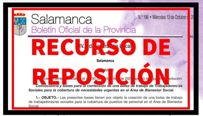 Presentamos recurso de reposición a las bases de la bolsa de TS del Ayuntamiento de Salamanca.
