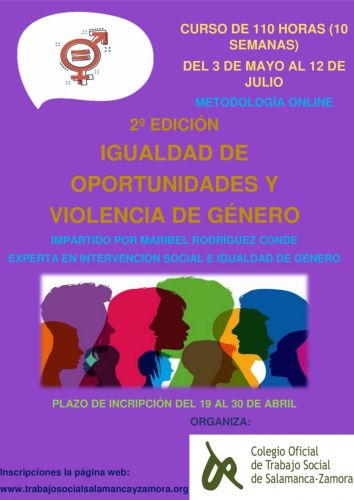 Arranca el plazo de inscripción de la 2ª edición del curso de Igualdad de Oportunidades y Violencia de Género.