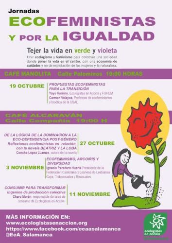 SALAMANCA. Jornadas ecofeministas para una transición ecologista. Primera jornada: Miércoles 19 de Octubre-19h-Café Manolita