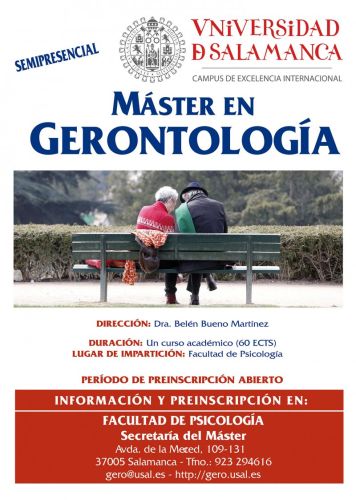 Salamanca. MÁSTER EN GERONTOLOGÍA, que cuenta con el aval de 27 años formando a especialistas en la atención multidisciplinar a las personas mayores.