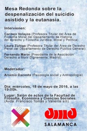 SALAMANCA. Mesa redonda Despenalización del suicidio asistido y la eutanasia.