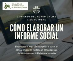 El curso on line ‘Cómo elaborar un informe social’ organizado por el COTSSAZA comenzará el próximo día 1 de octubre.