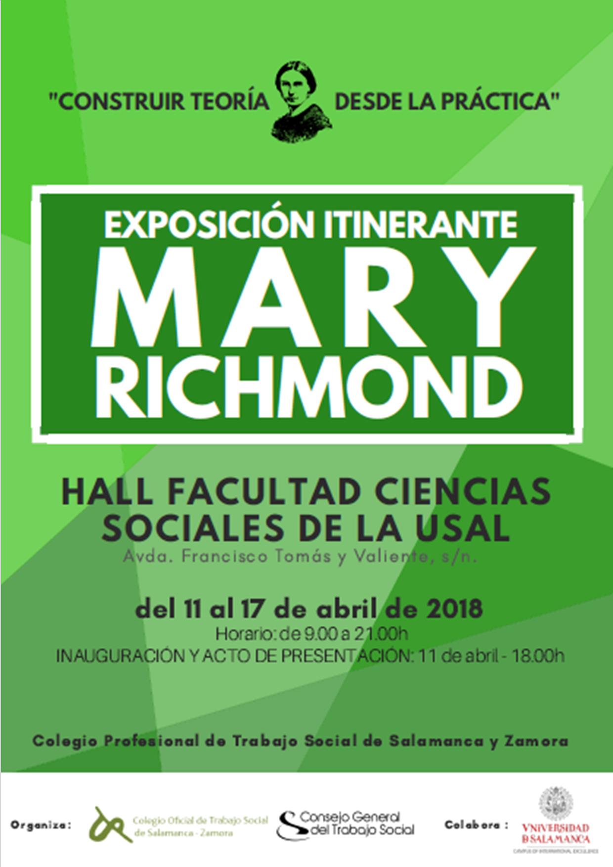 Nuestro Colegio y el Consejo General del Trabajo Social, en colaboración con la USAL, acercamos a Salamanca la exposición itinerante “Mary Richmond: Construir teoría desde la práctica” que podrá visitarse en el hall de la Facultad de CC.SS de la USAL del 11 al 17 de abril en horario de 09,00 a 21,00 horas.
