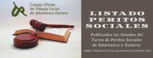 En cumplimiento de lo establecido en la Ley de Enjuiciamiento Civil, de 7 de agosto de 2000, artículo 341, párrafo 1, que encomienda a los Colegios Profesionales remitir anualmente una lista de colegiados/as dispuestos/as a actuar como peritos y siguiendo la instrucción 5/2001, de 19 de diciembre del CGPJ, sobre remisión anual a los órganos jurisdiccionales de listas de profesionales para su asignación como Peritos Sociales, el Colegio Oficial de Trabajo Social de Salamanca y Zamora ha remitido al decanato de los Juzgados de ambas provincias los siguientes listados para el TURNO DE PERITAJE SOCIAL.