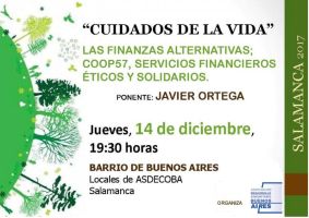 SALAMANCA. Charla "Cuidados de la vida", Las finanzas alternativas, COOP57, Servicios financieros, éticos y solidarios, a cargo de Javier Ortega.